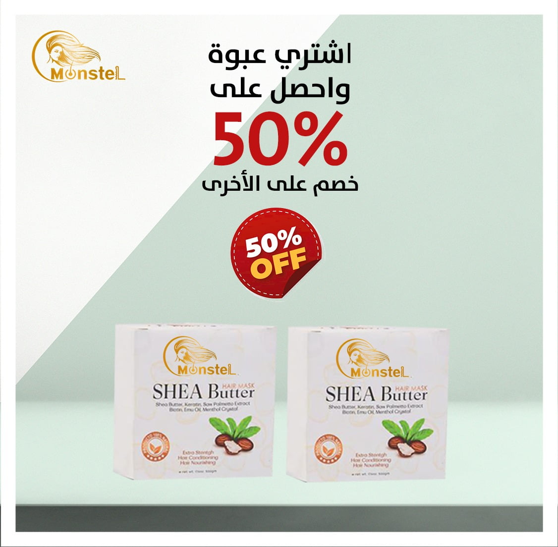 ماسك الشيا من مونستل بمكونات 100% طبيعية لإصلاح الشعر التالف وإعادة حيويته ولمعانه ومحاربة التقصف والهيشان، ويعمل على حماية الشعر من الحرارة، آمن تماماً ويصلح لكل أنواع الشعر.